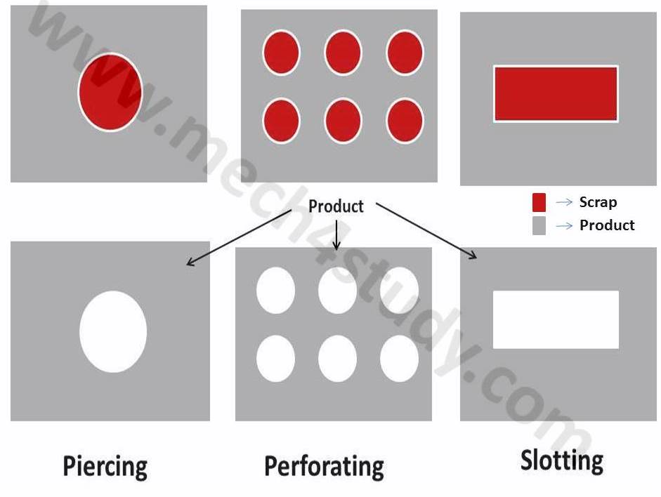 It is similar operation like blanking except, the desire part is sheet and the blank is scrap. This process takes place on punching press. The negative allowance is provided on the punch which gives positive tolerance on sheet.