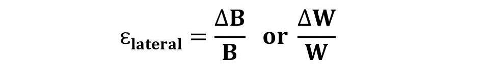 The ratio of change in length to its original length in the perpendicular direction of the loading is called lateral strain. In the above example it can be represented by
